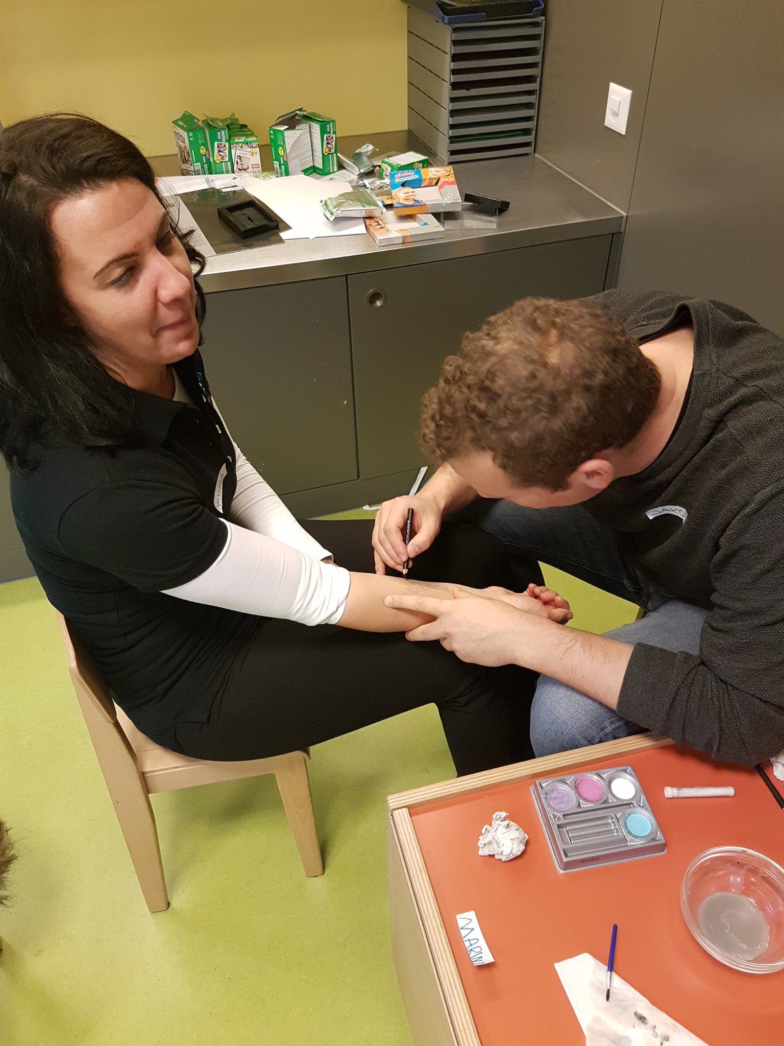 Von 14.00 bis 17.00 Uhr ging es im „Familientreff Hard“ der Stadt Zürich kunterbunt und multikulti zu. In der Back-Ecke konnte man Lebkuchen mit buntem Puderzucker, Streuseln und Formen aus essbarer „Knetmasse“ verzieren. In der Bastel-Ecke entstanden farbenprächtige Geschenkboxen. Es wurden Polaroids geschossen, die direkt in den kreativsten Foto-Collagen verarbeitet wurden. In der Schmink-Ecke wurden die Jungs zu Spider-Mans, die Meitli wünschten sich Blumen und Schmetterlinge mit Glitzer ins Gesicht.