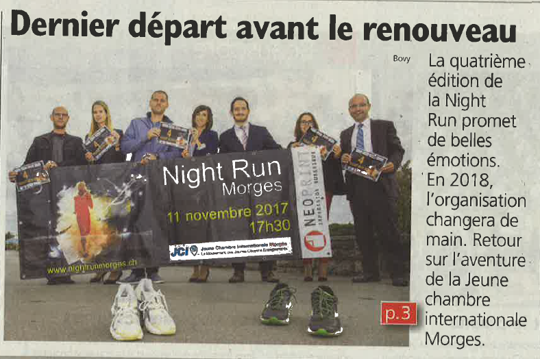 Pour les 40 ans de l’OLM de Morges, nous avons mis sur pied non seulement un événement reflétant pleinement les valeurs de la JCI mais nous permettant aussi de les véhiculer à la population : une course à pied de nuit en novembre au bord du lac à Morges.