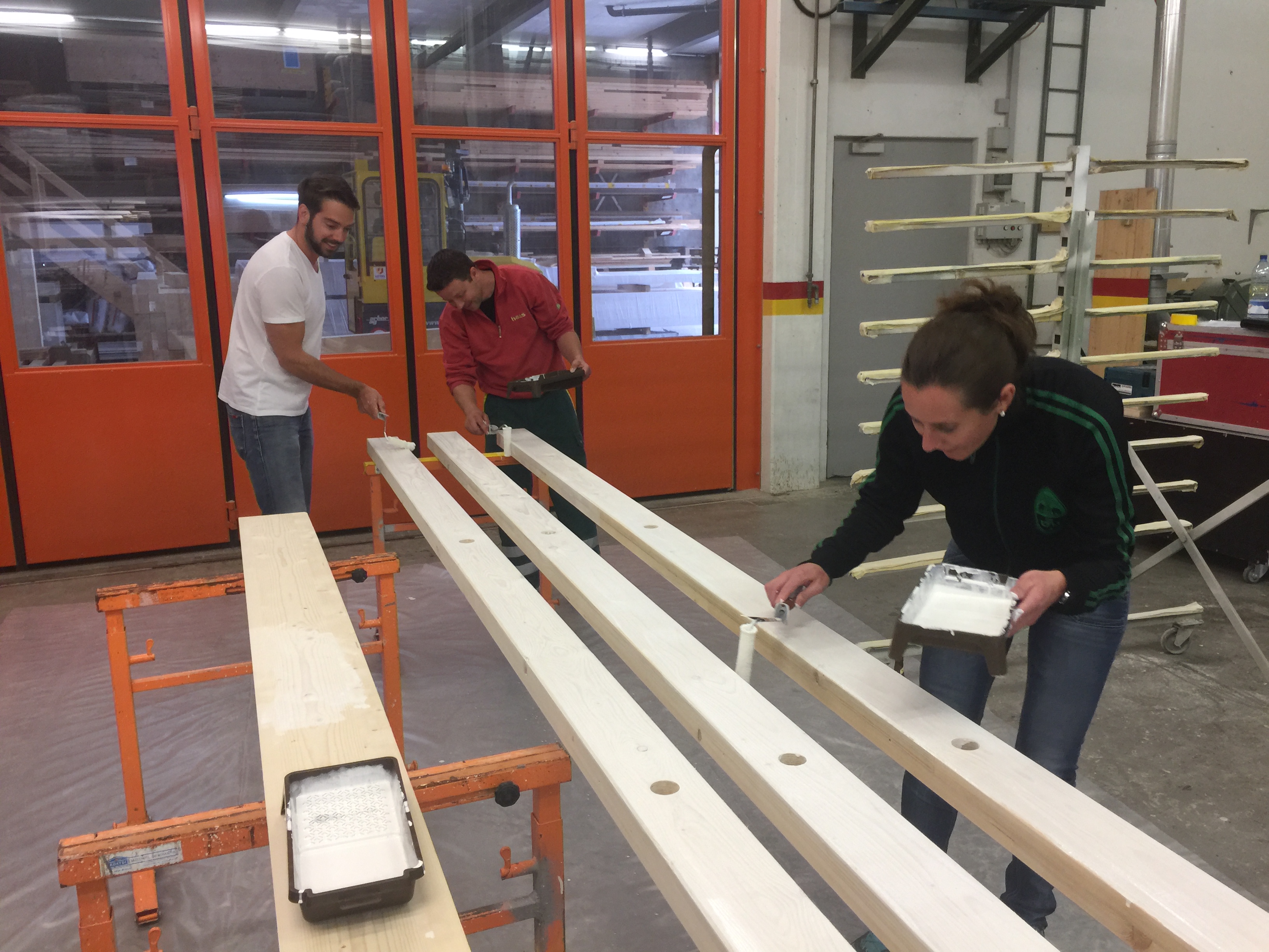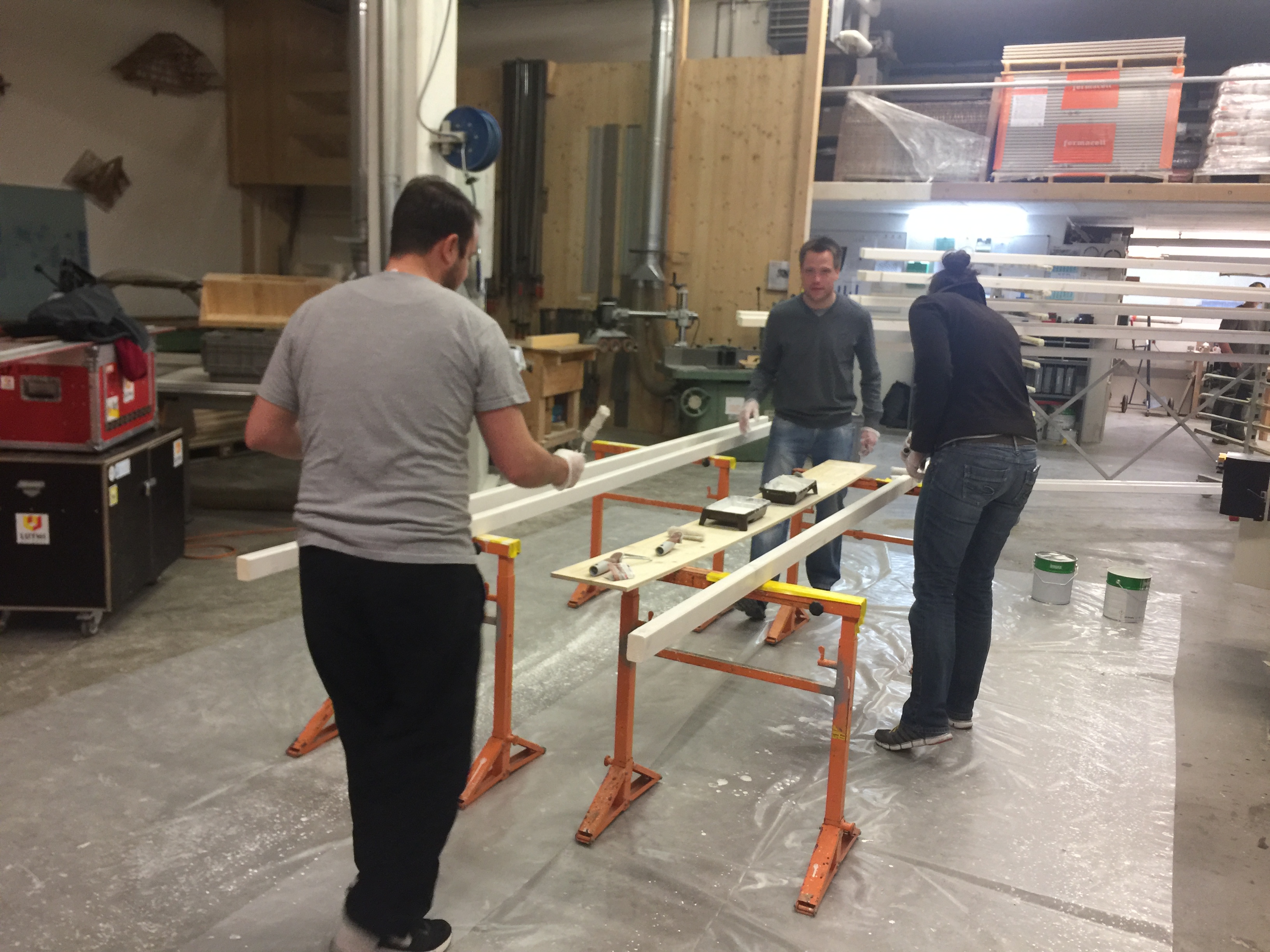 So kam es, dass wir nach langer Planungszeit und Sponsoringsuche, endlich die neue Decke aus Holz vorbereiten und schlussendlich im Creaviva während rund einer Woche montieren konnten.