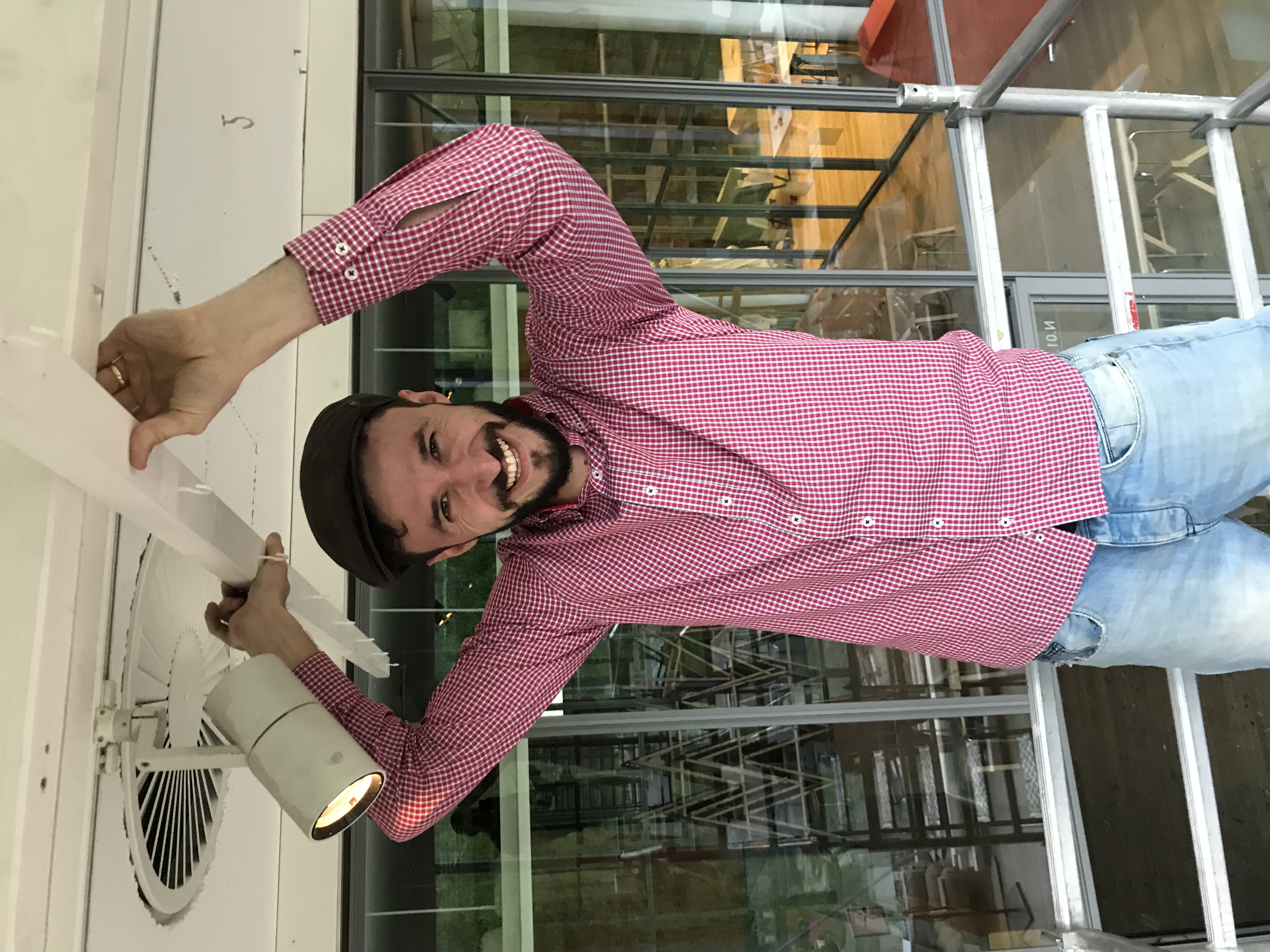 Sein Wunsch war eine Holzdeckenkonstruktion, welche nahezu unsichtbar gebaut werden müsse - schön krumm ausgerichtet und im Lot mit dem restlichen Gebäude - und trotzdem muss die Möglichkeit da sein, grosse Kunstwerke aufzuhängen.