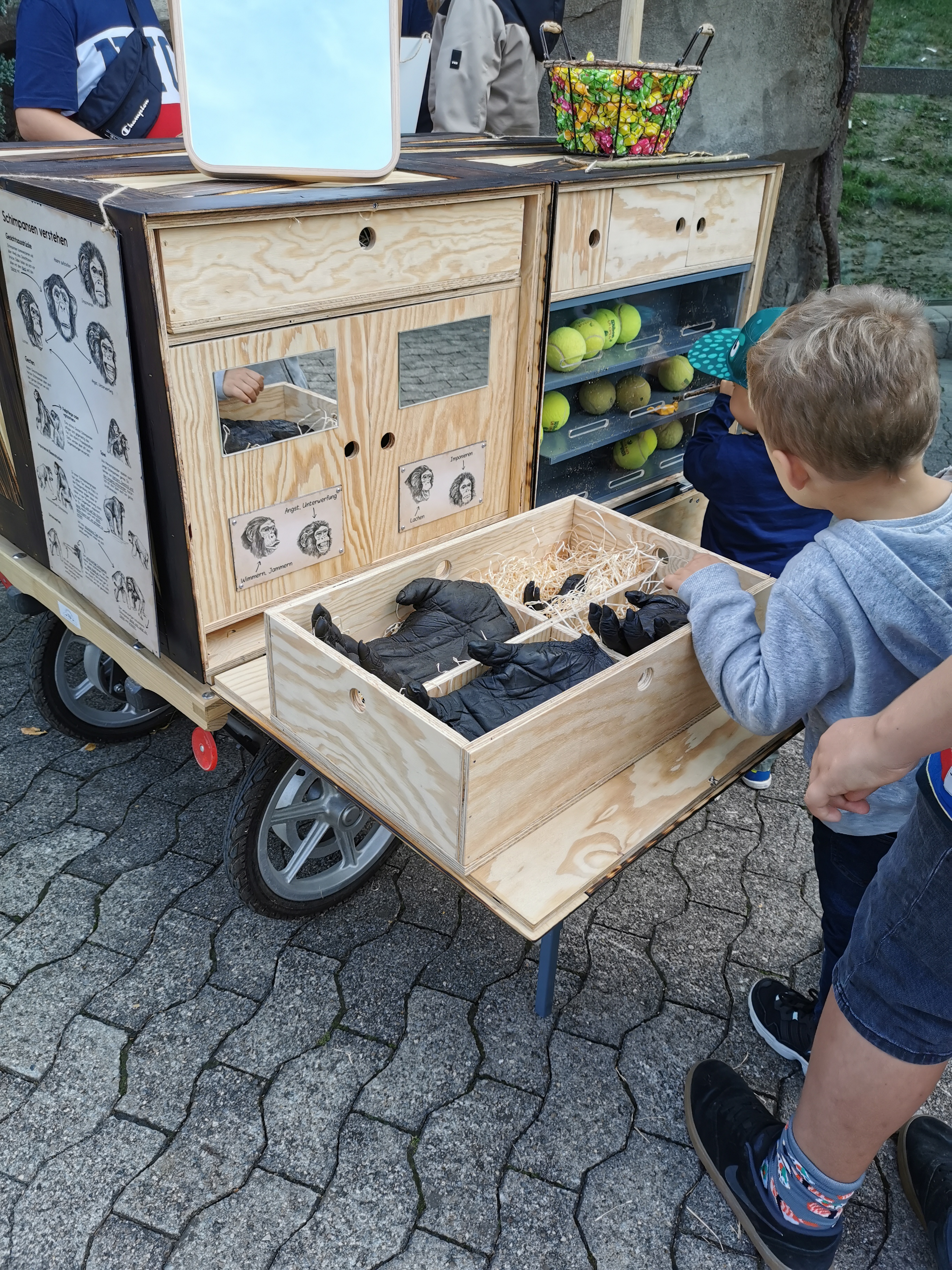Grosser Andrang an diesem wunderschönen sonnigen Sonntag vor dem Affenhaus. Viele Familien fanden ihren Weg in den Walter Zoo und begutachteten neugierig die Kiste auf vier Rädern.