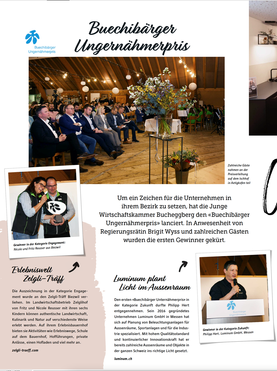 Mit dem «Buechibärger Ungernähmerpris» starten wir nach zehn Jahren JCI Bucheggberg eine Initiative, welche die Wertschätzung von uns allen gegenüber den Unternehmerinnen und Unternehmern im Bucheggberg und den angrenzenden Gebieten zum Ausdruck bringen soll.