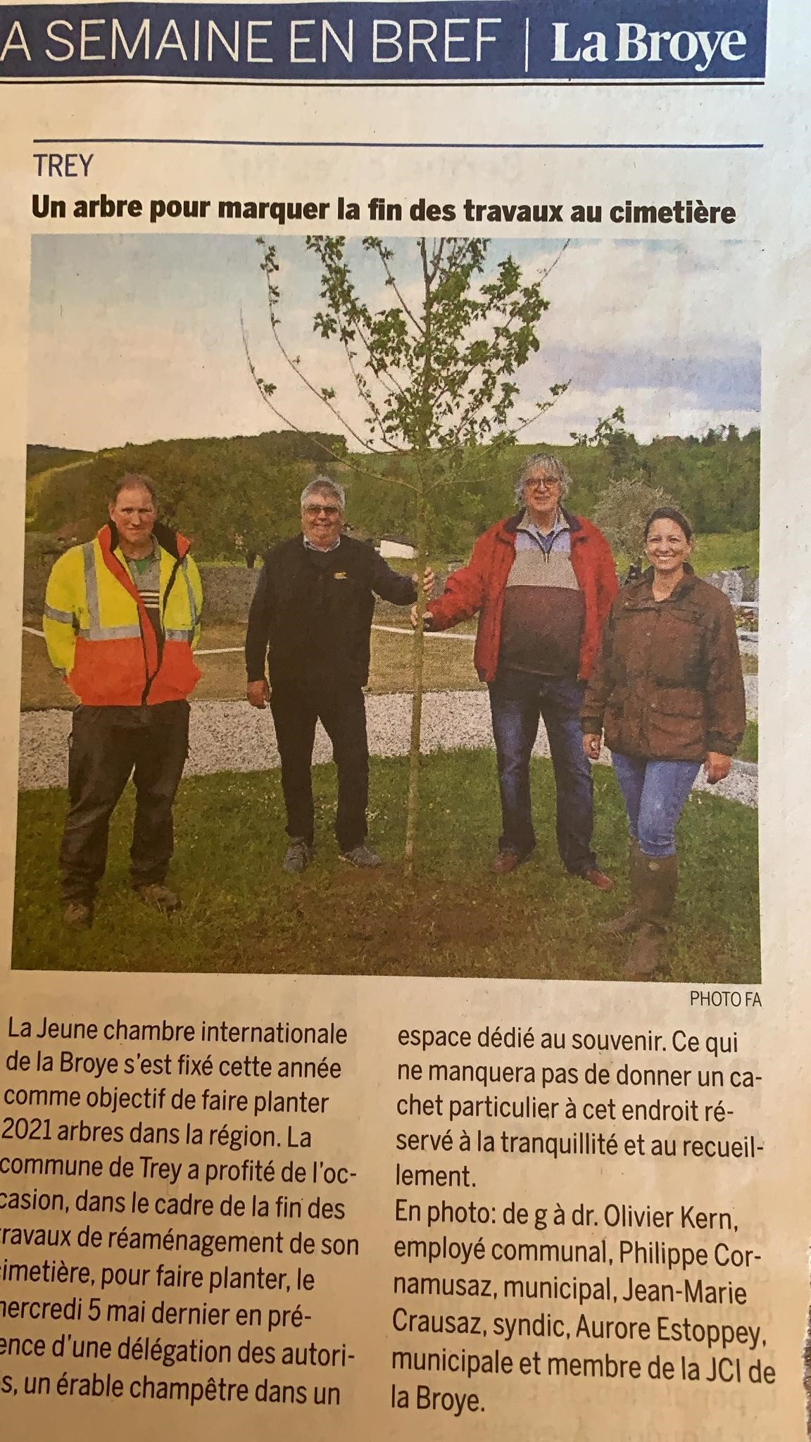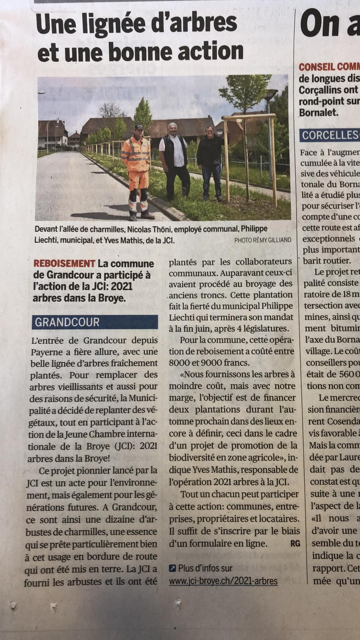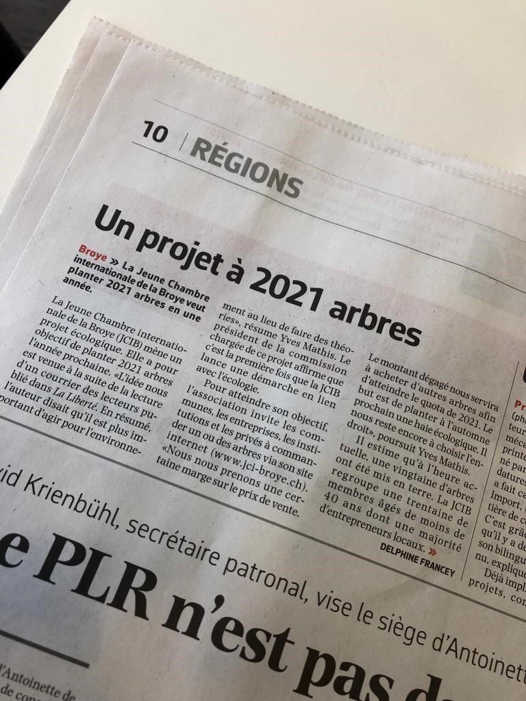 Touché par un courrier des lecteurs, écris par M. Claude Colliard dans le journal La Liberté et qui parlait de la place de l'arbre dans nos vies, la JCI Broye et ça présidente de 2020 Aurélie Haenni, s’est tout simplement posé la question : pourquoi ne pas faire, pour une fois, quelque chose pour la nature de notre région, nos paysages et pour notre bien être ?