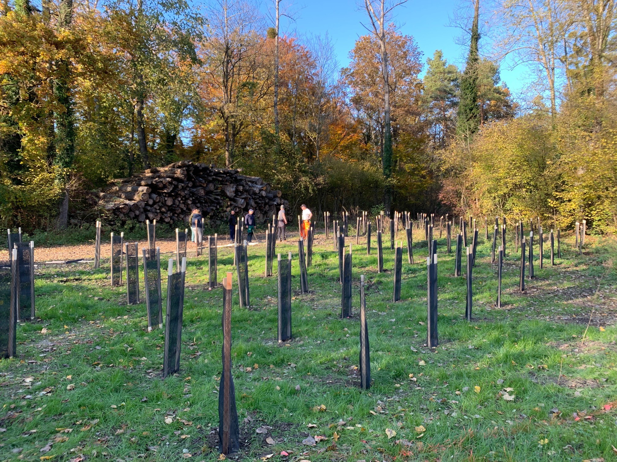 Suite à la vente de ces arbres, nous avons pu contribuer financièrement à la plantation d'une haie écologique sur la commune de Missy et Saint-Aubin, plantée celle-ci par les agriculteurs de la région.