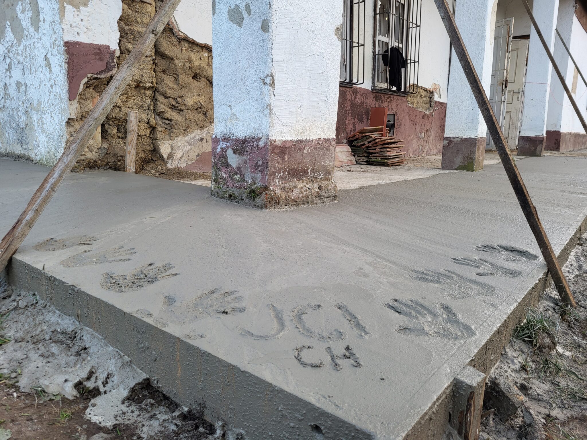 - ~4 tonnes de béton ont été transportées avec des brouettes