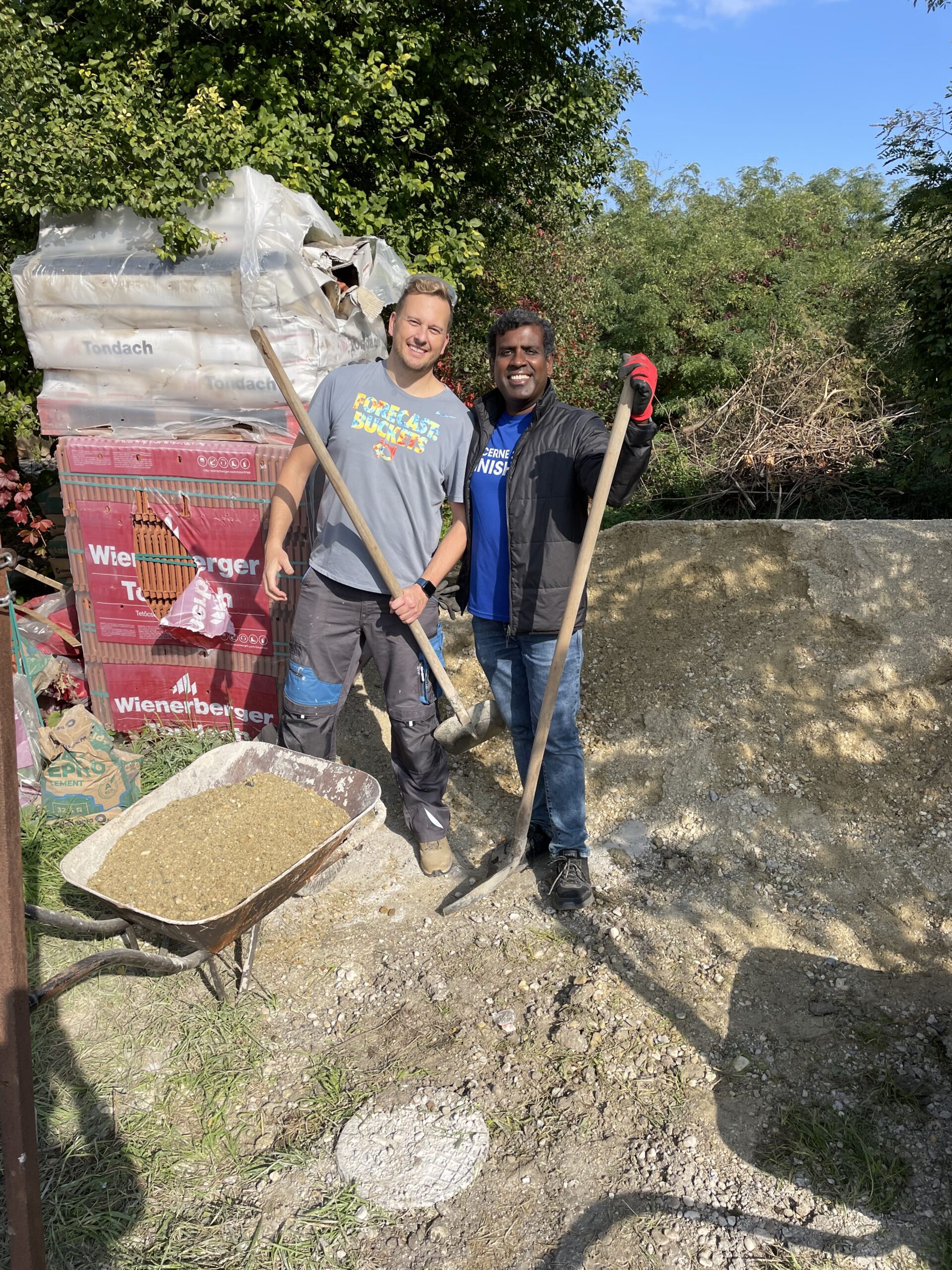 - Mit Schubkarren wurden ~4 Tonnen Beton transportiert