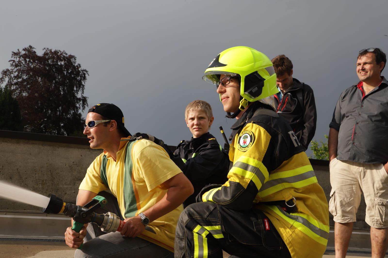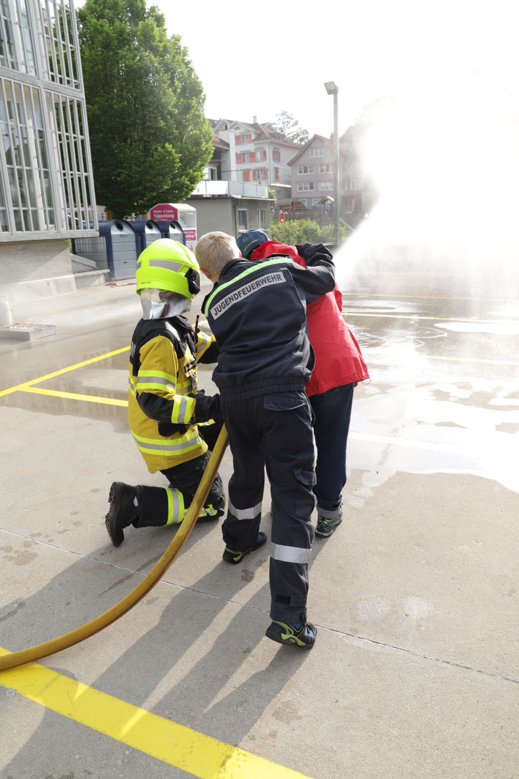 Die Junge Wirtschaftskammer Rheintal (JCI Rheintal) ermöglichte rund 20 Mitarbeitern und Bewohnern des Vereins Rhyboot in Altstätten einen aussergewöhnlichen Ausflug zur Jungfeuerwehr Walzenhausen. Bei den Mitarbeitern und Bewohnern des Vereins Rhyboot handelt es sich um handicapierte, körperlich und geistig beeintächtigte Personen. Während eines lauen Sommerabends hatten die Bewohnerinnen und Bewohner die Möglichkeit, an verschiedenen Übungen der Jungfeuerwehr teilzunehmen. So wurden drei Posten eingerichtet, an denen die unterschiedlichen Fertigkeiten der Jungfeuerwehr demonstriert und gemeinsam geübt wurden. Am ersten Posten wurde ein übervoller Wasserschacht abgepumpt – die Teilnehmer staunten nicht schlecht über die enormen Wassermengen, die die verhältnismässig kleine Pumpe nach fachgerechter Installation abtransportieren konnte. Am zweiten Posten wurde dann der Umgang mit dem Feuerwehrschlauch geübt: Der eine oder andere Schlauch musste in gemeinsamer Anstrengung durch zwei bis drei Personen fixiert werden, so stark war die Kraft des austretenden Wassers. Es wurde dann gar ein echtes Feuer gelegt, welches es zu löschen galt. Der beim Löschen aufkommende Sommerabendregen unterstützte zwar die Löscharbeiten, trotzdem kam der eine oder andere ins Schwitzen! Am dritten Posten wurde dann noch die Versorgung von verletzten oder ermüdeten Personen simuliert. Es zeigte sich, dass viele Teilnehmer ihr Wissen aus dem Nothelferkurs zielgerichtet einzusetzen wussten. Auch das für die Übungen bereitgestellte Löschfahrzeug der Feuerwehr wurde intensiv begutachtet und analysiert. Nach getaner Arbeit durften die zufriedenen und müden «Rhybootler» gemeinsam mit der Jungfeuerwehr und der Jungen Wirtschaftskammer Rheintal bei Wurst und feinem Nussgipfel das Erlebte Revue passieren lassen. Beim gemeinsamen Essen wurden rege Kontakte zwischen den jungen Feuerwehrlern, der Jungen Wirtschaftskammer Rheintal und den Rhyboot-Bewohnern geknüpft. Die mit dem Anlass angestrebte Integration der Beeinträchtigten, wurde damit vollends erreicht. Die Junge Wirtschaftskammer Rheintal freut sich, mit diesem «Social Event» einen wirklich gelungenen Anlass für alle Beteiligten geschaffen zu haben.