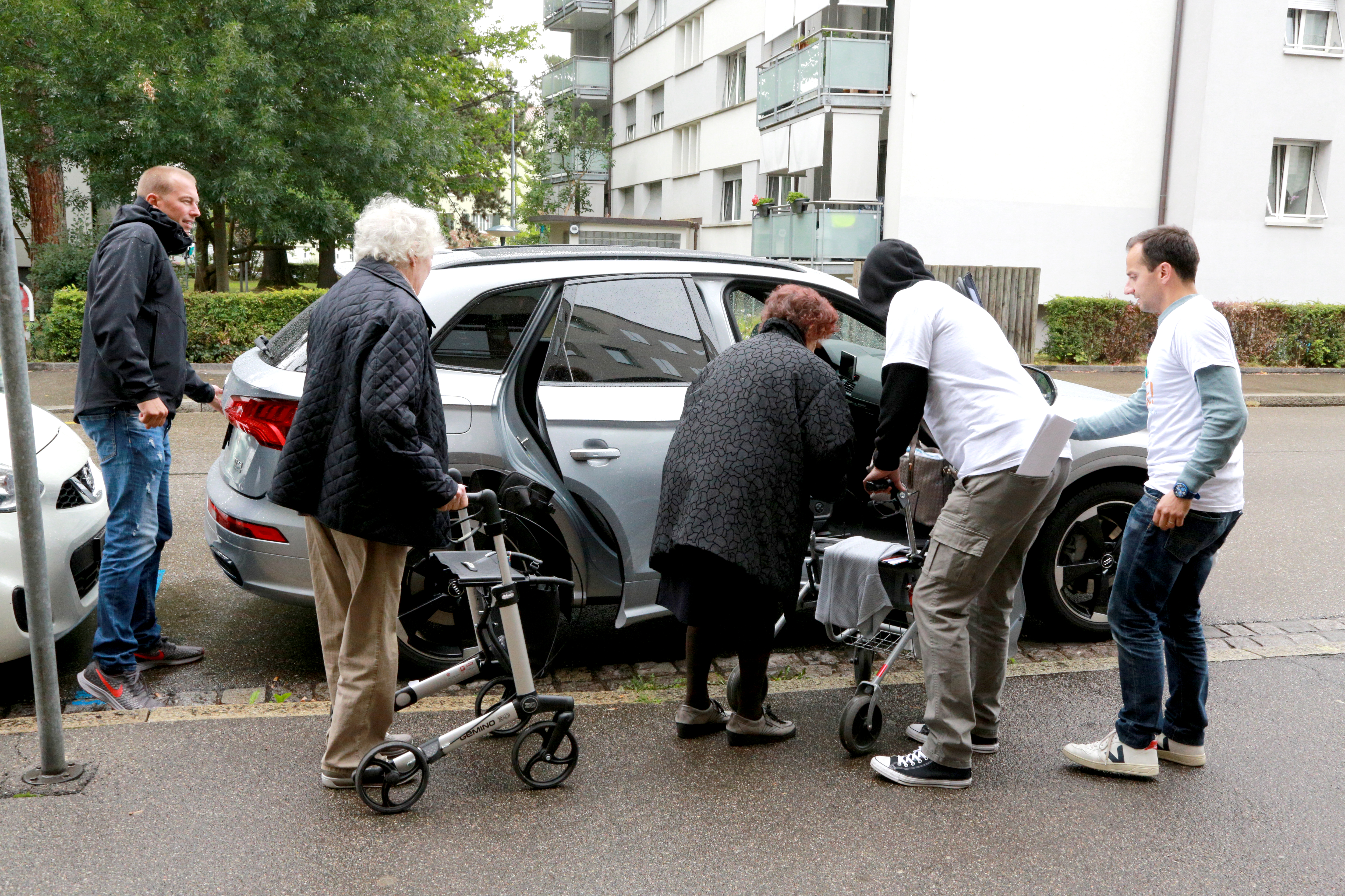 Unser Konzept für den ersten „Uuse“ Tag war allerdings klar. Wir wollten gemeinsam mit älteren Menschen lustige und unvergessliche Momente wie jenen mit meiner Urgrossmutter erleben. Es ging vor allem darum, dass sich die fremden „Grossis und Grosspapis“ mal wieder „mobil“ und „frei“ fühlen dürfen. Geradeso, als würden sie in einem Flugzeug abhauen ans Ende der Welt. Deshalb wollten wir die Menschen aus ihrem gewohnten Heimumfeld herausholen und mit Autos von A nach B bewegen.