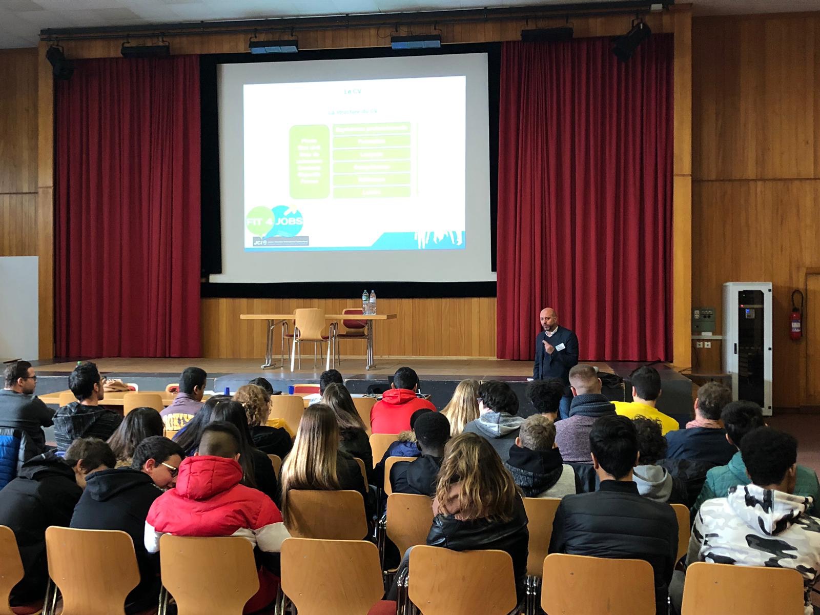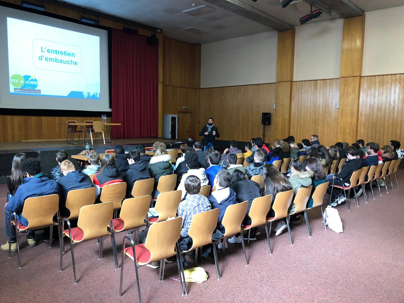 Tatsächlich treffen sich seit drei Jahren verschieden Studenten in einer prekären Situation am Collège des Forges in La Chaux-de-Fonds, erstmals im zehnten Jahr von HARMOS mit JCI-Mitgliedern aus dem JCI Montagnes neuchâteloises, um mit Hilfe einer theoretischen Präsentation auf die Suche nach Lehrstellen sowie auf das Schreiben von Motivationsschreiben und Lebensläufen vorbereitet zu sein. Dieses Treffen ist auch eine Gelegenheit, durch kleine spontane Interviews und erste Kontakte zu knüpfen.