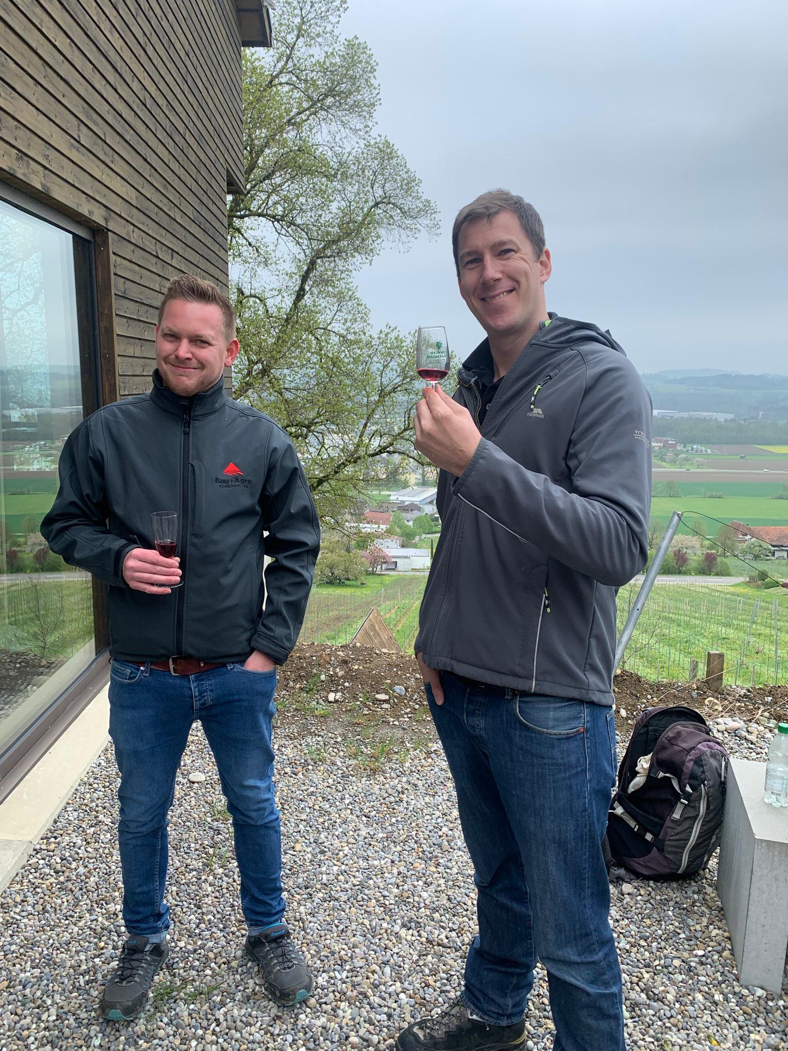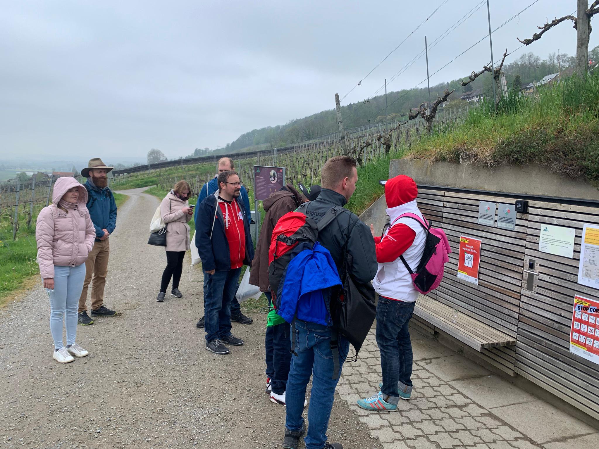 Auf der kurzen Wanderung durch die Rebberge erhielten wir interessante Infos von Michael Burkart, einem der vielen vertretenen Winzer am Ottoberg, und verköstigten uns im Anschluss mit diversen Weinen aus den prall gefüllten Weintresoren an der ausgewählten Route.