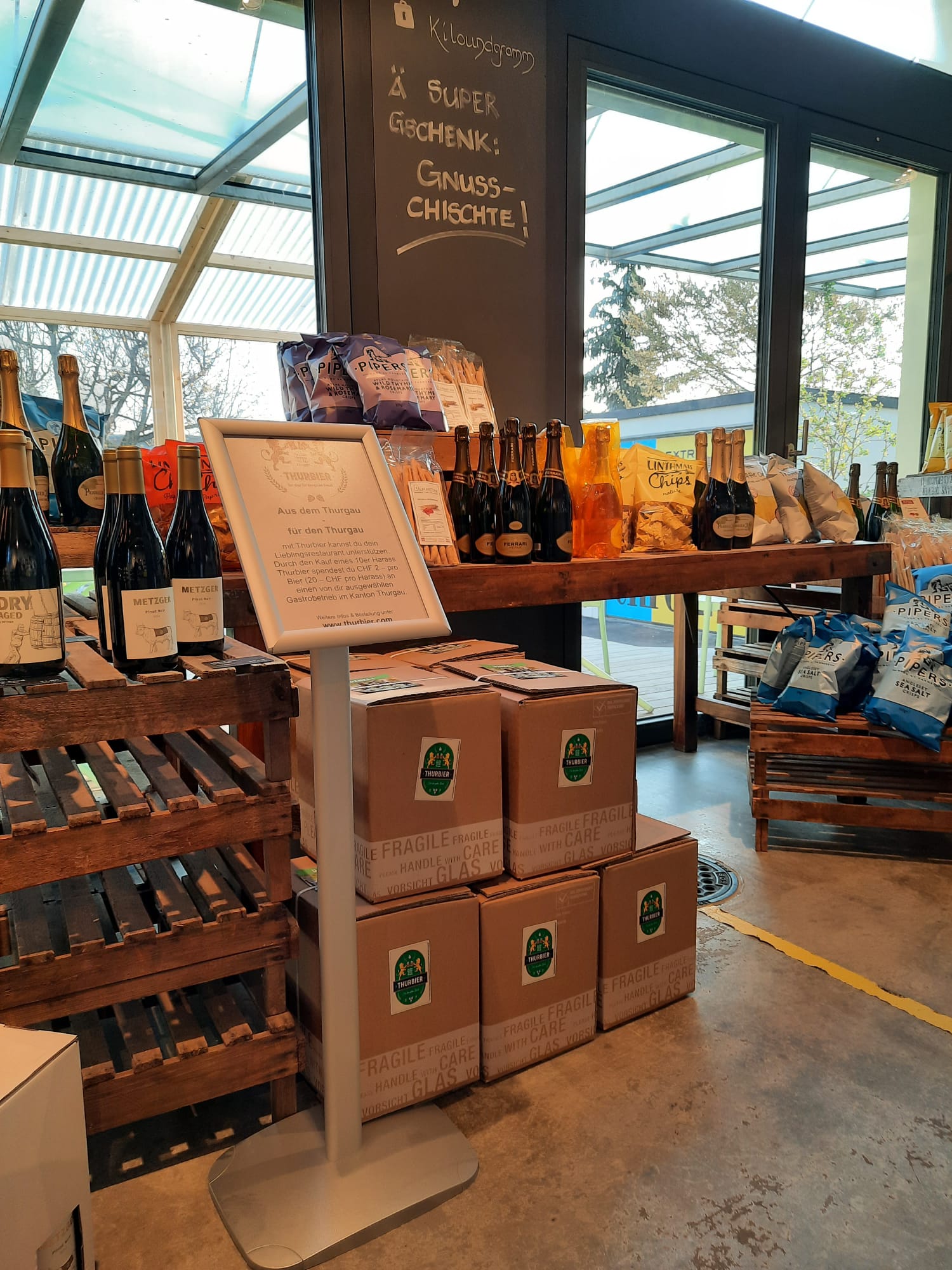 Mit Thurbier hat man die Möglichkeit, sein Lieblingsrestaurant, liebste Beiz, Bar oder Club zu unterstützen, indem man einen Harass Thurbier kauft.