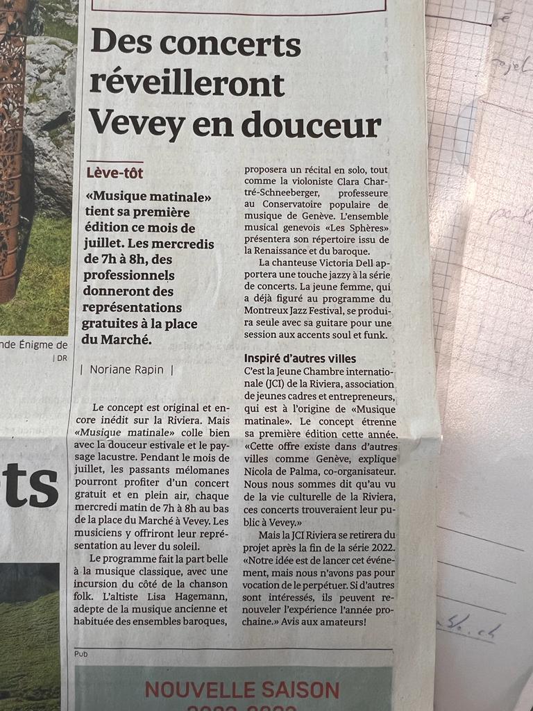 commencer la journée. La JCI Riviera proposait chaque mercredi matin du mois de juillet, un concert à