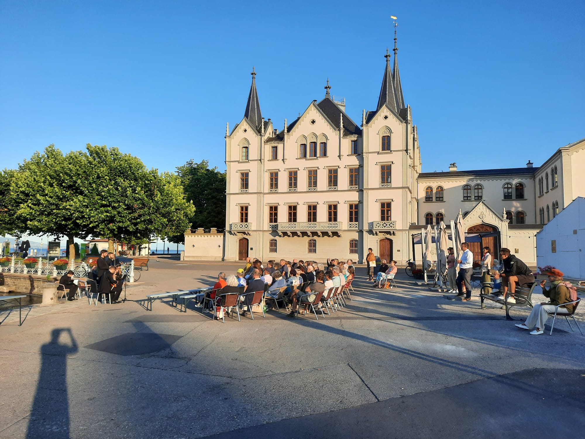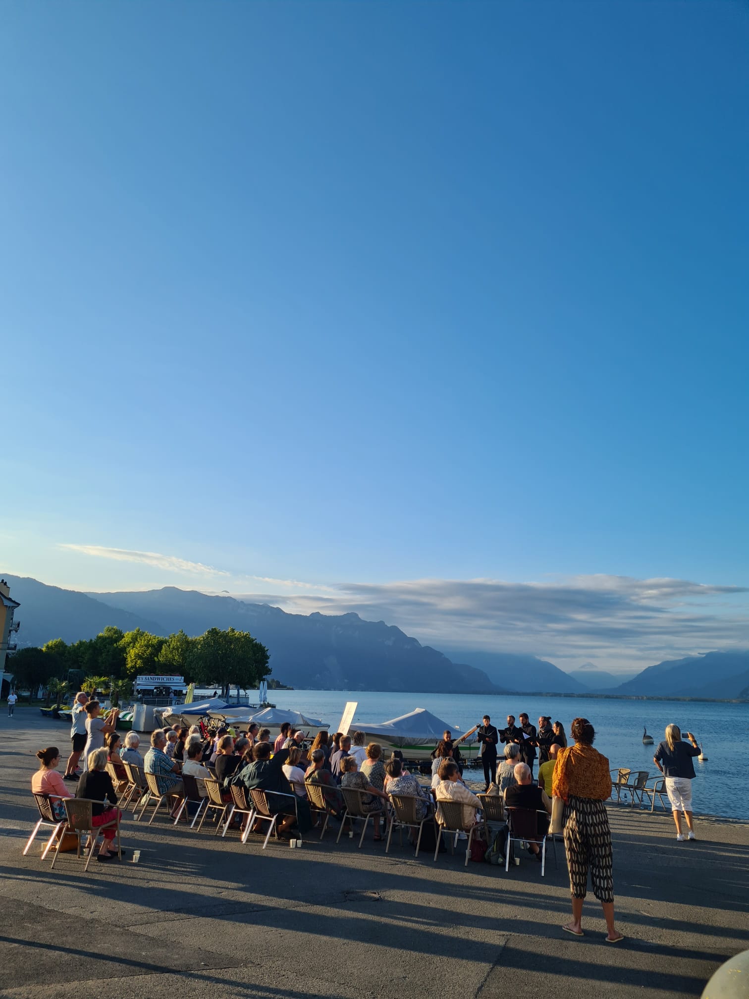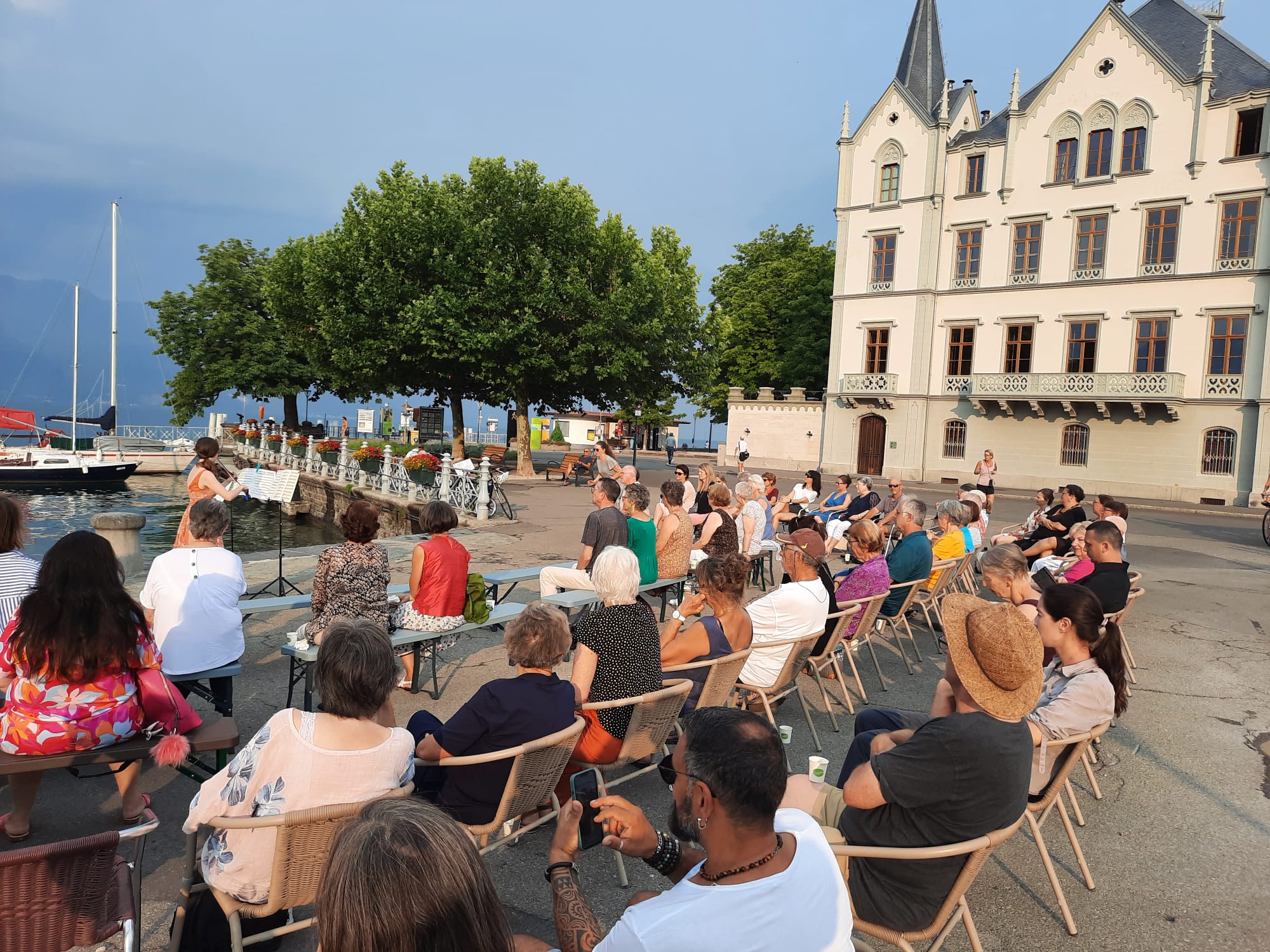 Dans cet écrin au coeur de Vevey, avec un dégagement sur le Lac Léman, la vue sur les Alpes et les Terrasses du Lavaux, plusieurs artistes sont venus semaine après semaine ravir les oreilles des petits et des grands. La programmation était en accord avec le lieu en ce moment particulier de la journée.
