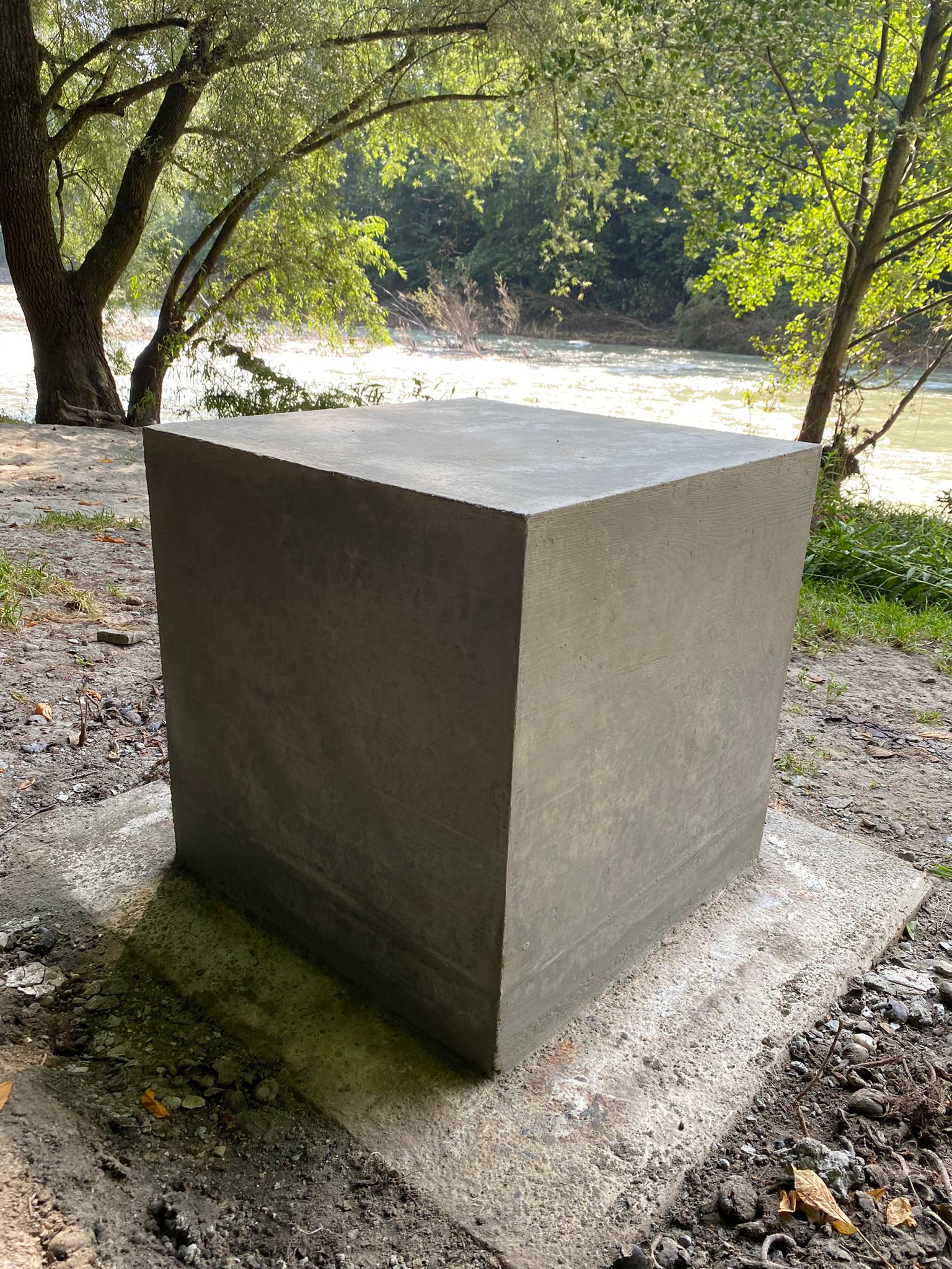 Konstruktion: 60 cm x 60 cm großer Betonsockel, Grill komplett nach Maß, mit einem aus einem Stück gebogenen Edelstahlblech für den Außenbereich.