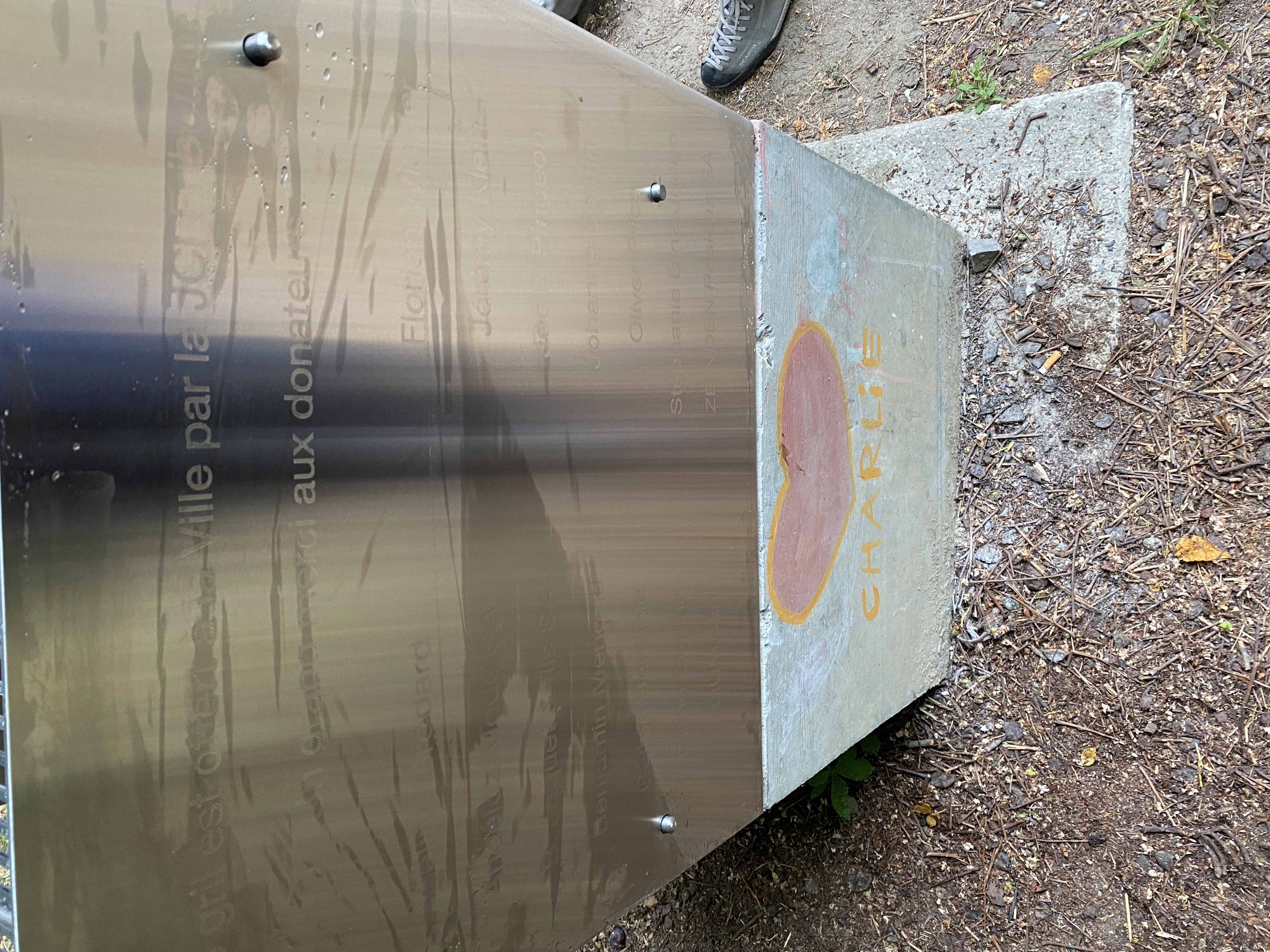 Spécificité : financement complet par les membres et la JCI Fribourg. Chaque membre ayant participé financièrement a vu son nom gravé au laser sur la structure du gril.