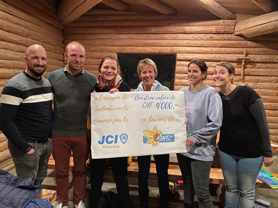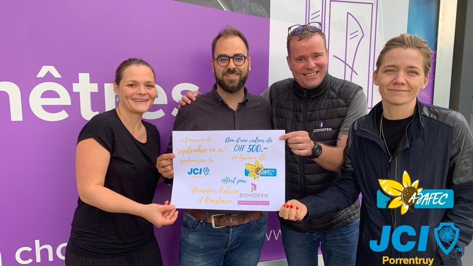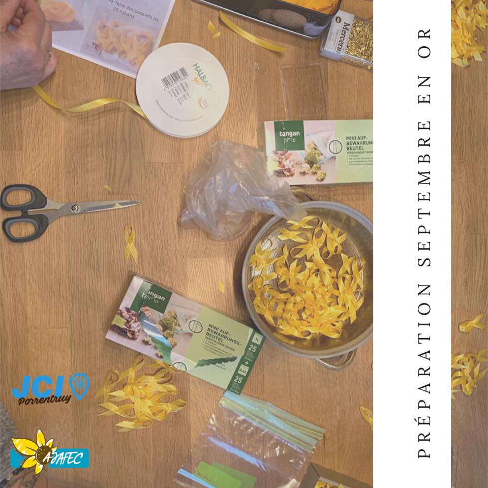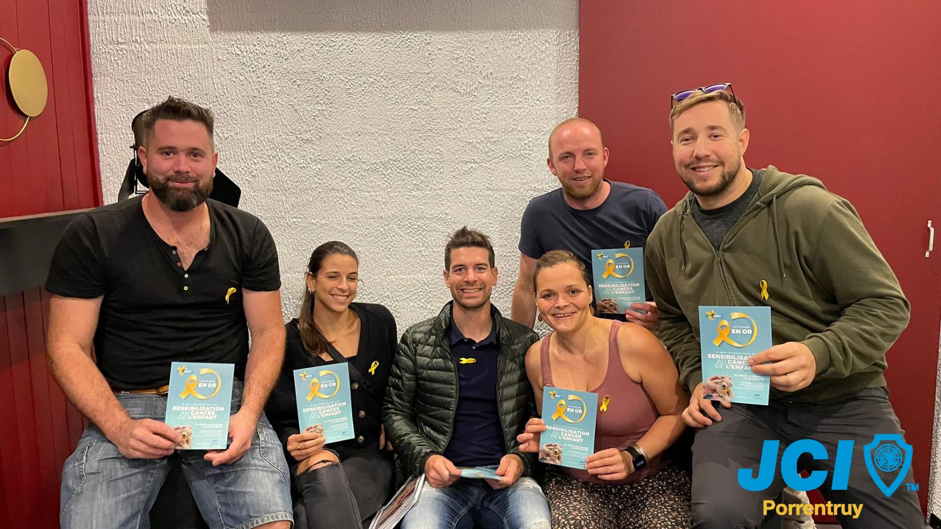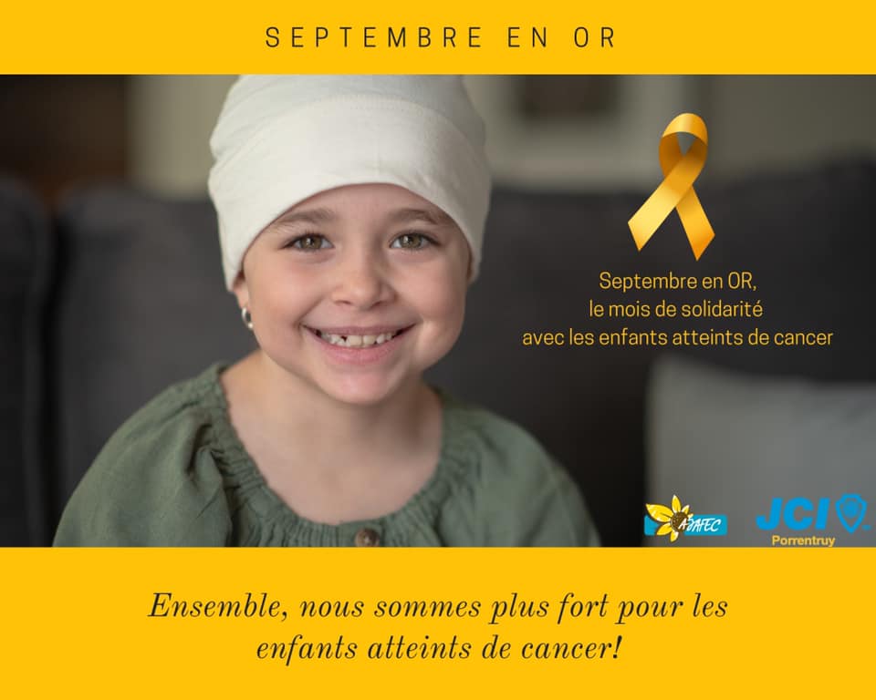 Die Sensibilisierung für das Thema Kinderkrebs erfolgt auf internationaler Ebene, insbesondere im Monat September durch die Aktion "Septembre en Or" (golden September). In Zusammenarbeit mit der AJAFEC, eine jurassische Organisation, die Familien mit krebskranken Kindern unterstützt, hat die JCI Porrentruy in 2021 eine Mittelbeschaffung für die Forschung in der pädiatrischen Onkologie durchgeführt. Ein Info-Flyer sowie personalisierte Sparbüchsen sowie 5'000 goldene Bänder wurden hergestellt. Diese wurden in rund 150 lokalen Geschäften und Tankstellen im Jura und im Berner Jura aufgestellt und waren ganzen September sichtbar.