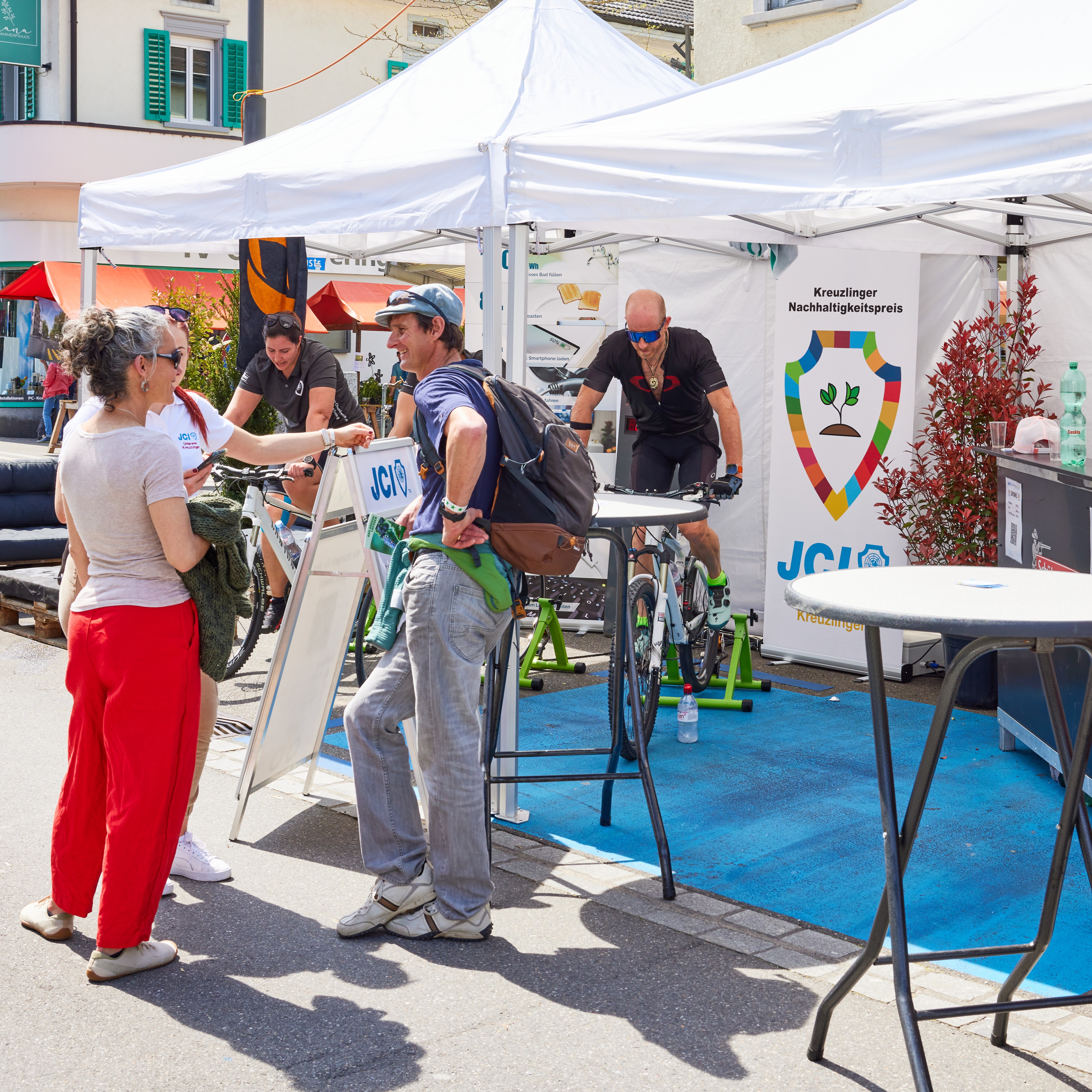 Die Junge Wirtschaftskammer Untersee-Kreuzlingen (JCI UK) hat mit einem eigenen Stand am diesjährigen Kreuzlinger Gartentag teilgenommen. Die Besucherinnen und Besucher konnten die Vereinsmitglieder für eine Spende auf einem Fahrrad fahren lassen, um Strom zu erzeugen. Es wurde eindrucksvoll aufgezeigt, wie viel Energie für jeweils ganz einfache Alltagsaktivitäten gebraucht wird. Ziel war es, der Bevölkerung das Thema Nachhaltigkeit ins Bewusstsein zu rufen.